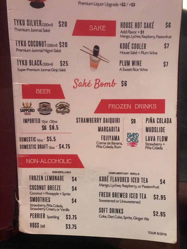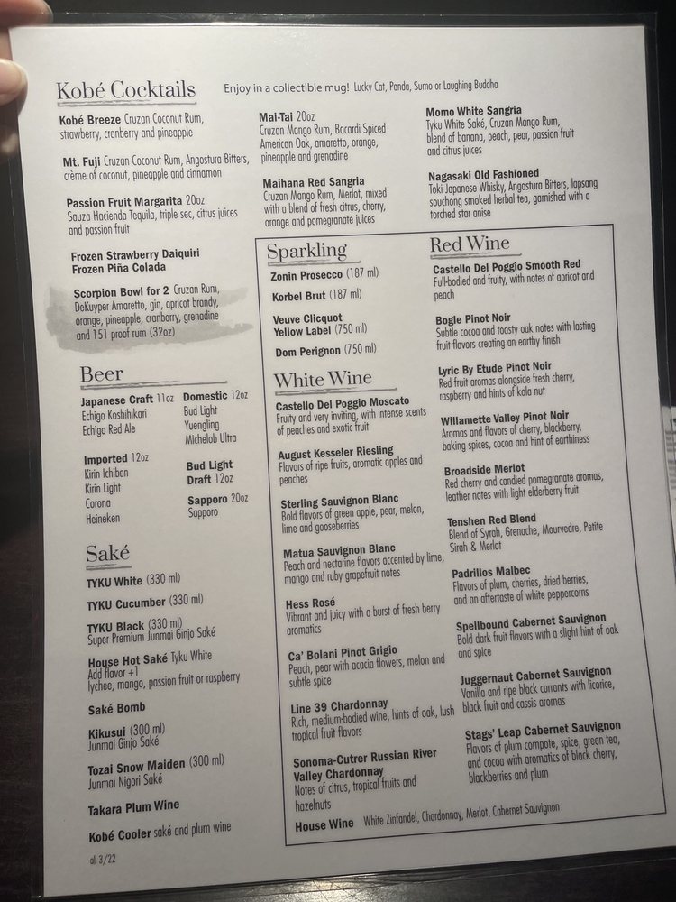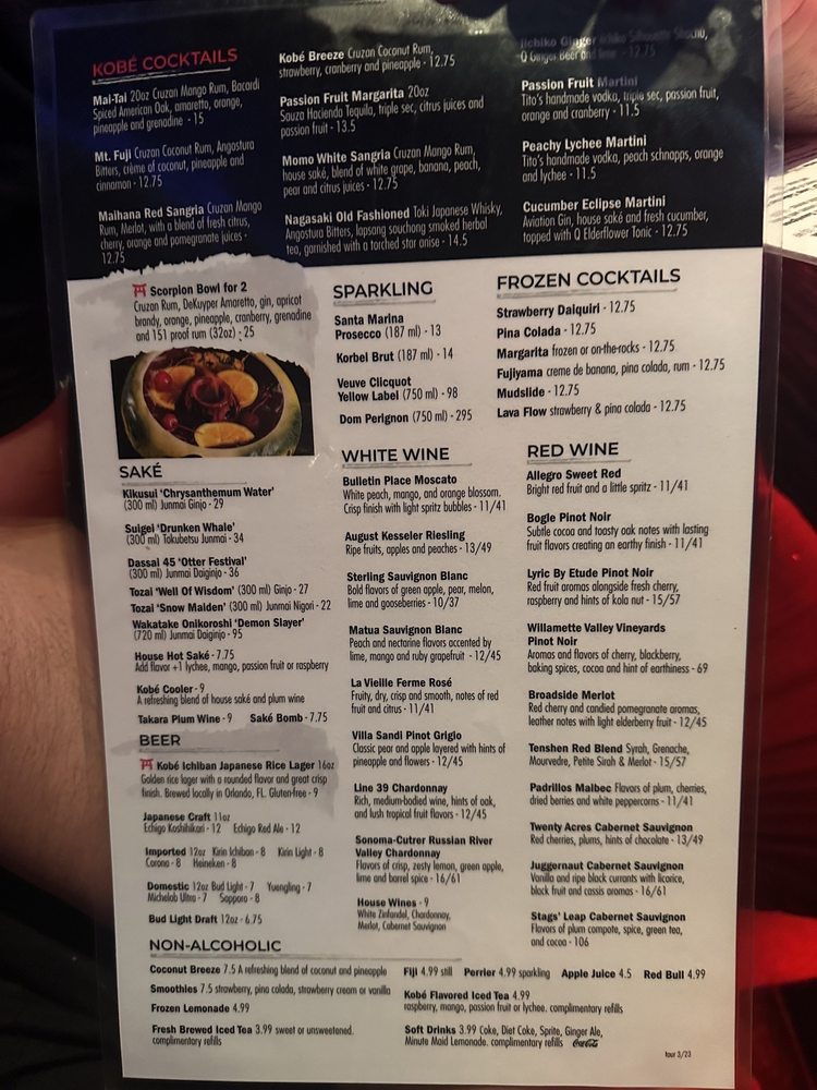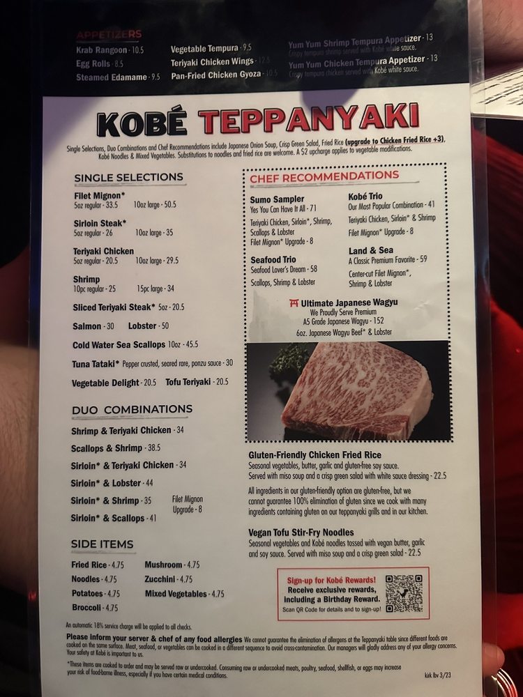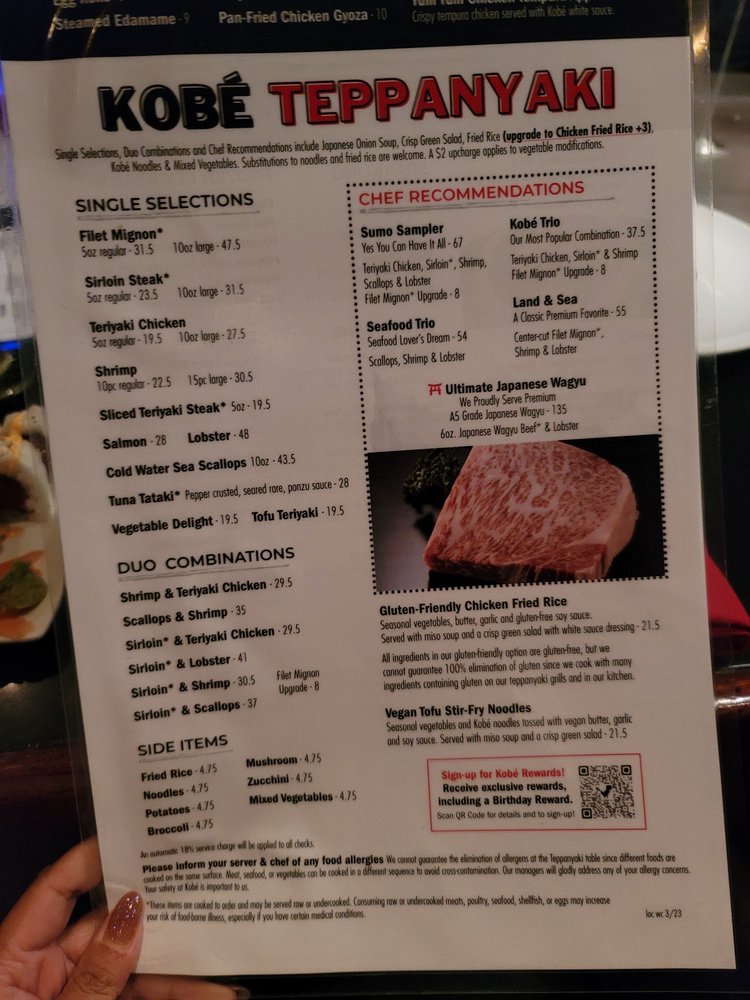 Kobé Japanese Steakhouse - Kirkman Menu